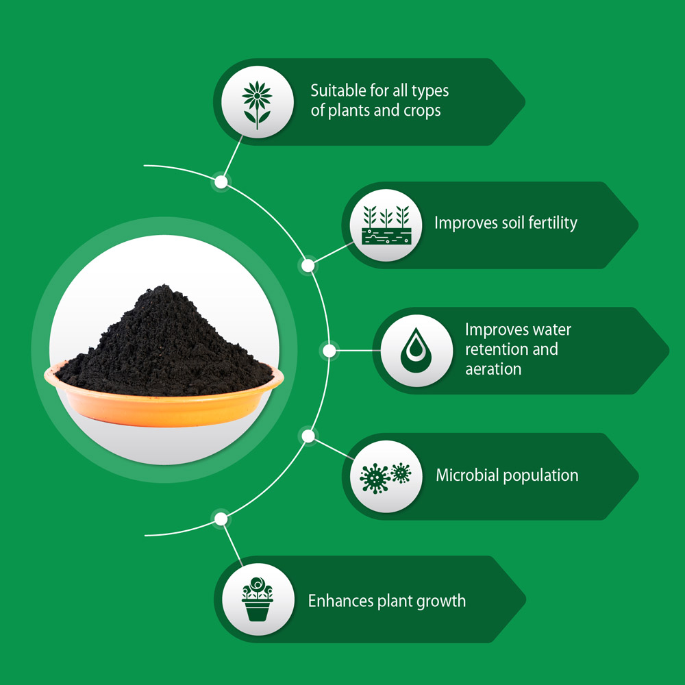 - Improves water retention and aeration.
