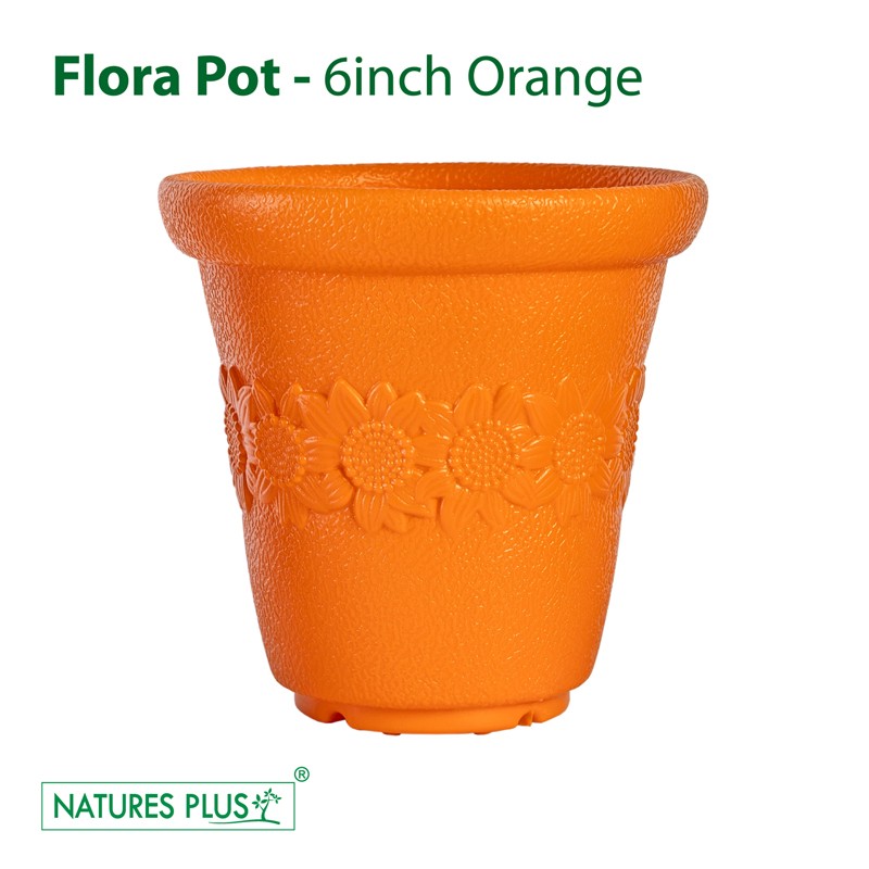 The Flora Pot Orange (6 Inch) is a bright, orange-colored plant pot perfect for small plants. Its compact size and vibrant color make it a cheerful addition to any indoor or outdoor space.