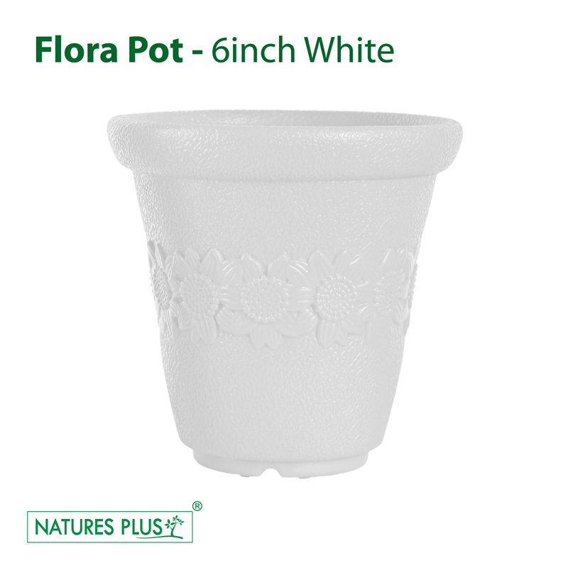 The Flora Pot White (6 Inch) is a bright, white-colored plant pot perfect for small plants. Its compact size and vibrant color make it a cheerful addition to any indoor or outdoor space.