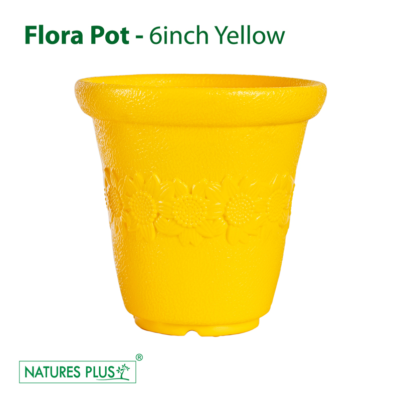 The Flora Pot Yellow (6 Inch) is a bright, yellow-colored plant pot perfect for small plants. Its compact size and vibrant color make it a cheerful addition to any indoor or outdoor space.