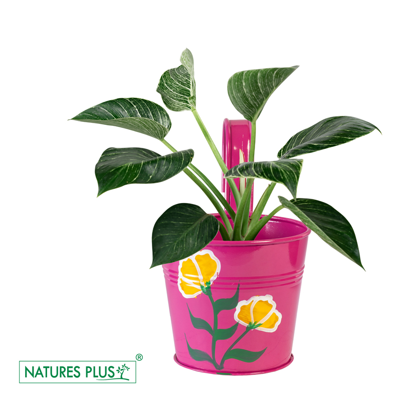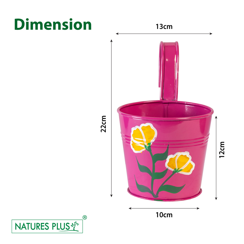 The Metal Railing Pot with single hook is a durable planter designed to hang securely on railings. Its sturdy metal construction and stylish design make it perfect for adding greenery to balconies or fences.