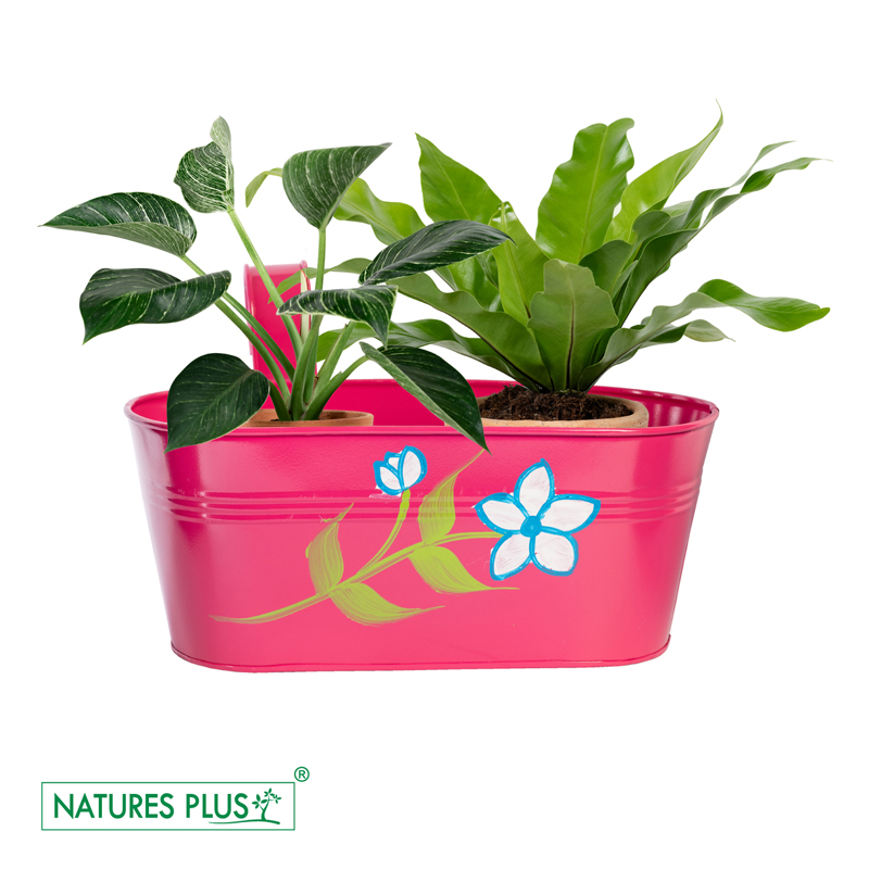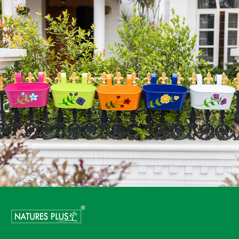The Metal Railing Pot is a durable planter designed to hang securely on railings. Its sturdy metal construction and stylish design make it perfect for adding greenery to balconies or fences.
